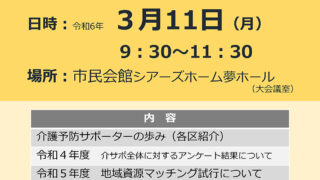 いつも地域活動へのご協力、ありがとうございます。さて、R7年度の介護予防サポーター養成講座が7月より、いよいよスタートします。(事前のスマホ準備会は6/23)今年度は、参集型とオンラインの講座があります。受講者の年齢は問いません。介護予防サ...