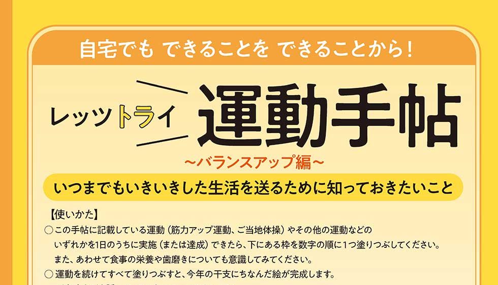 ※画像をクリックすると「レッツトライ運動手帖 ~バランスアップ編~」のPDFが開きます。