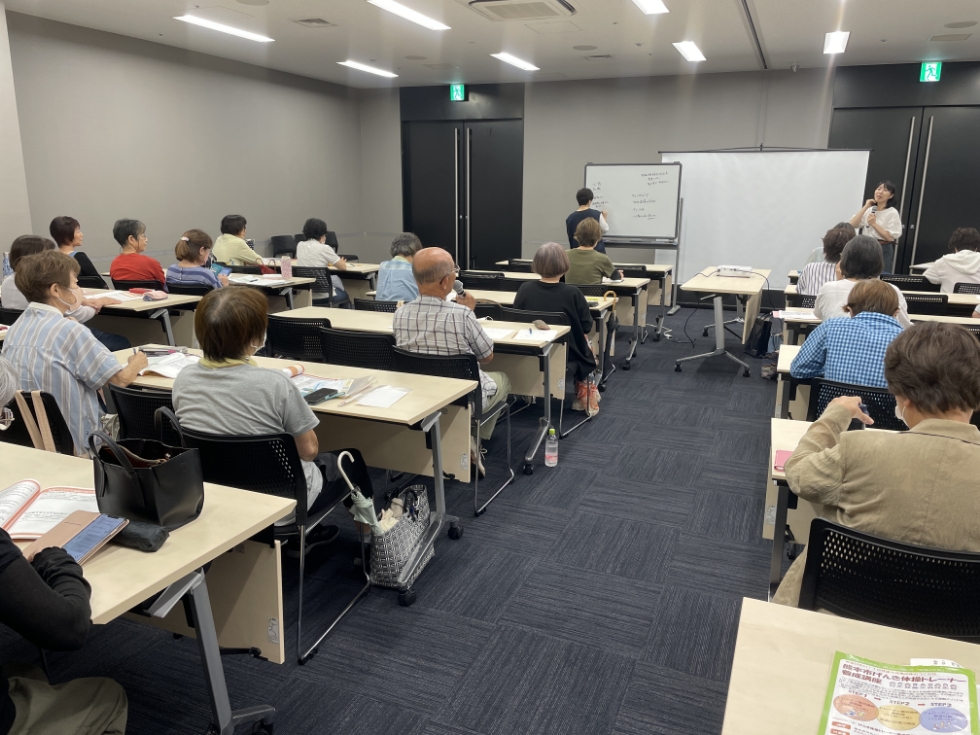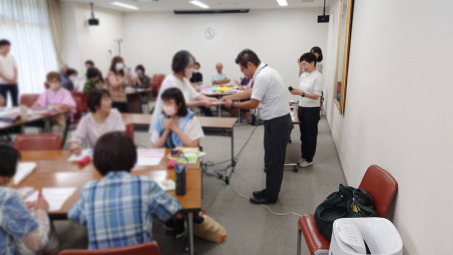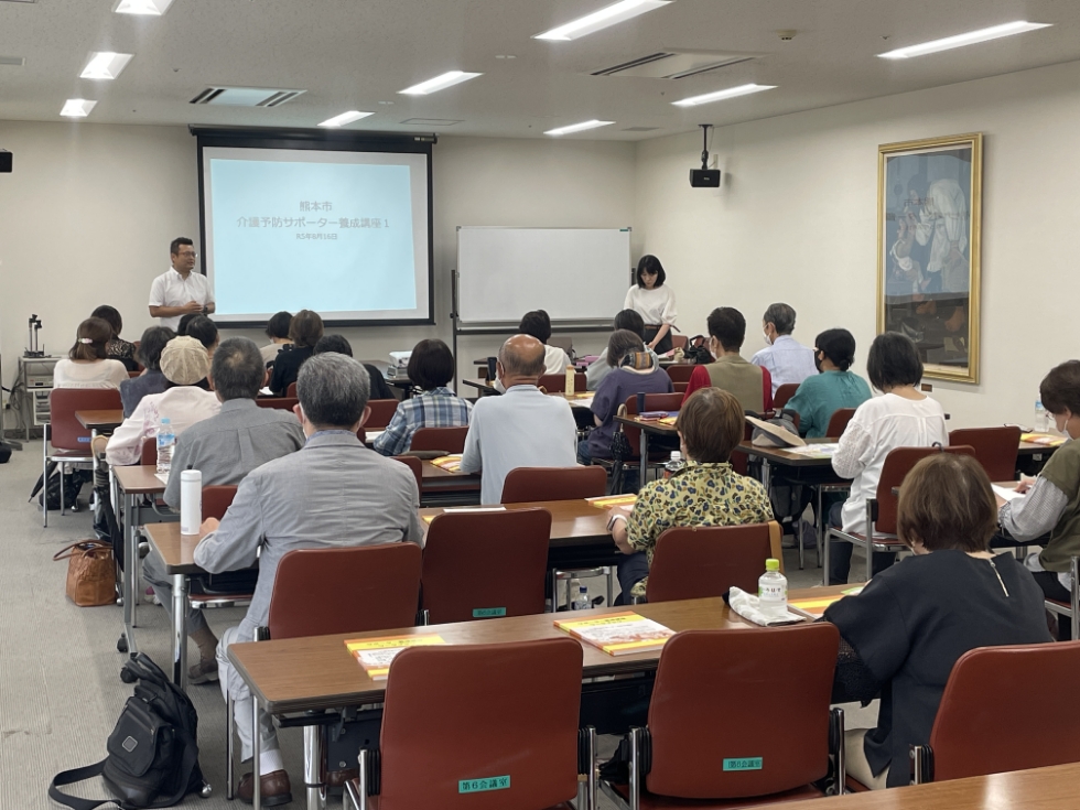 R5年度 介護予防サポーター養成講座が修了しました。 介護予防サポーター 2023.09.28 令和5年7月31日スマホ準備会からスタートしたサポーター養成講座は9月6日最終日を迎え、32名の方がサポーターとして登録いただきました。 主な講座内容をご紹介します。 【第1回講座】熊本市、高齢福祉課よりあいさつからスタート 【第2回講座】熊本城ホールにて「通いの場とは何か?」をテーマに考えました。 【第3回講座】オンライン全体会の様子 【第4回講座】地域資源の疑似マッチングを行いました。 【第4回講座】最終回! 修了書をお渡しの様子
