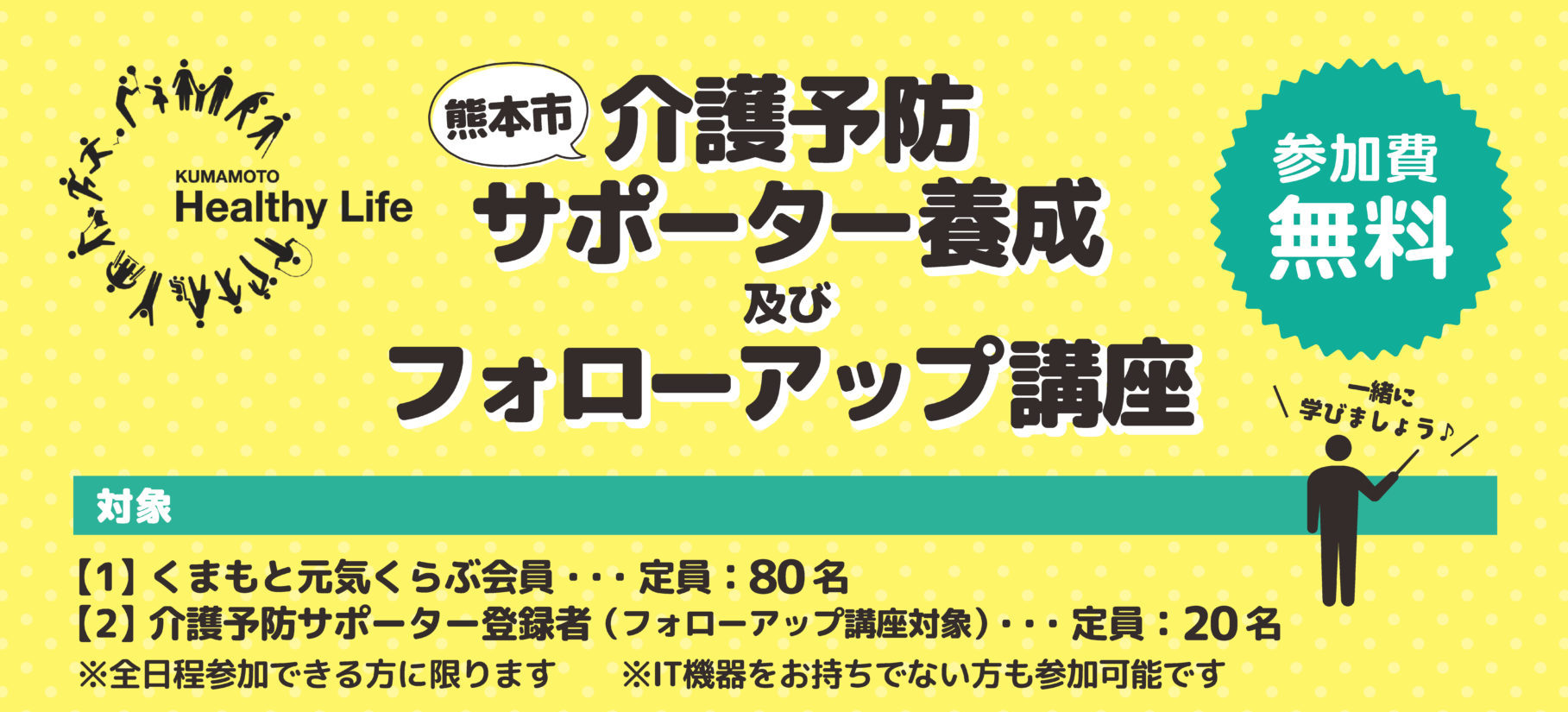 熊本市「介護予サポーター養成及びフォローアップ講座」開催のお知らせ 熊本市からのお知らせ 2021.12.03 ※画像をクリックすると「熊本市 介護予サポーター養成及びフォローアップ講座」のPDFが開きます。