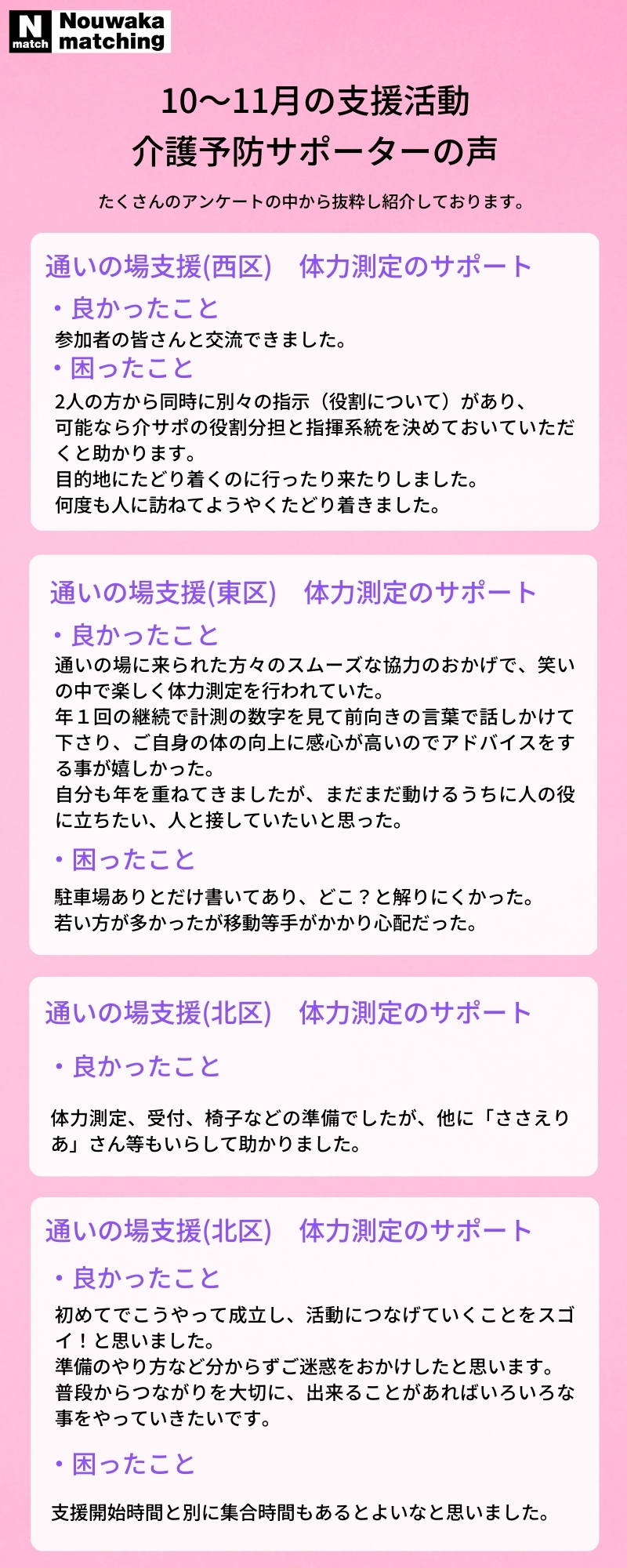 介護予防サポーター、支援依頼者からのアンケートを元に活動状況のご報告をいたします。